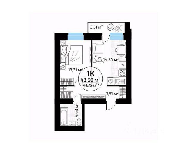 Кухонная зона- 10,67 кв.м. с выходом на лоджию 4,03 кв.м., где можно создать удобное пространство с продуманным функционалом и красивым интерьером.