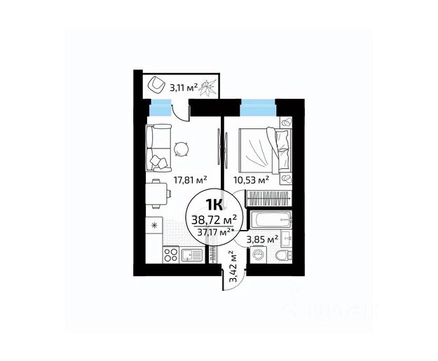 Продается 1-но комнатная квартира. Комфортная функциональная планировка с достойными характеристиками: