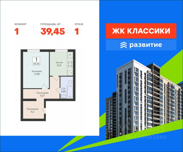 В продаже квартира площадью 43.12 кв. м с отделкой white box. Квартира находится в жилом комплексе "Салют", на 1 этаже 12 этажного дома. Застройщик - ГК "Развитие". "Салют" - особая история комфорта. Новый жилой комплекс расположен в историческом районе Самары. Развитое окружение, уютный двор, функциональные планировки и лаконичное архитектурное решение. Здесь вы сможете забыть о городской суете и наслаждаться тишиной и спокойствием. Расположение Пешком: - 5 минут до остановки "СПТУ-50"; - 5 минут до сквера "Октябрь"; - 15 минут до ж/д станции "Козелковская". На автомобиле: - 2 минуты до Московского шоссе; - 10 минут до ТРЦ "МЕГА"; - 15 минут до пляжа у Лысой горы; - 30 минут до центра города. Благоустройство - двор для множества сценариев отдыха; - ландшафтное озеленение; - уютные лавочки в тени деревьев; - дорожки для прогулок и бега; - яркие детские площадки; - безопасность для малышей: экологичные материалы, мягкое покрытие; - спортивные тренажеры на открытом воздухе; - стильные входные группы с многоуровневым освещением; - паркинг на прилегающей территории; - стрит-ритейл на первых этажах: магазины, кафе, пункты выдачи. Окружение - 3 школы, 2 детских сада, творческие и развивающие секции для детей; - крупные торговые центры "МЕГА" и "МИР"; - спорткомплекс "Салют", стадион "Солидарность Самара Арена"; - сквер "Октябрь", лес "Нагорная Дача", лесопарк 60-летия Советской власти, природный лесопарк "Дубки". Продается 1-комнатная квартира на 1 этаже в Самаре.