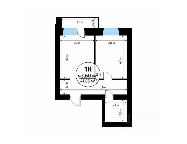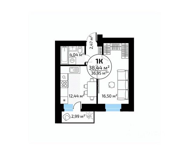 • ✅ Минимальная площадь: 34,1 м²