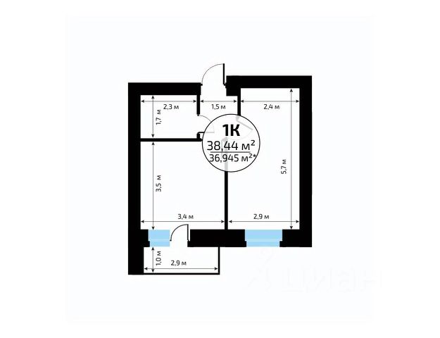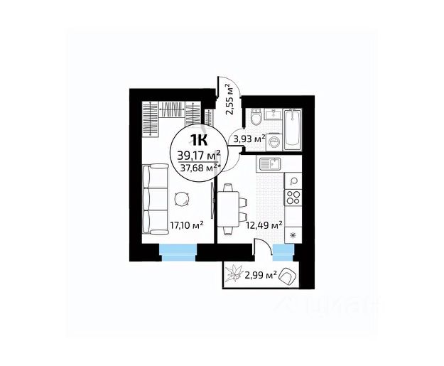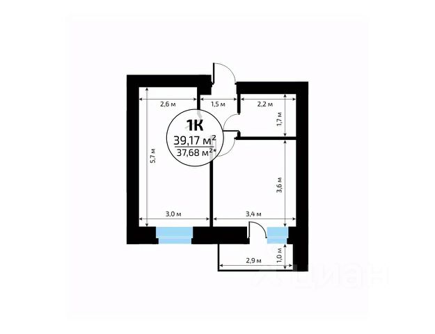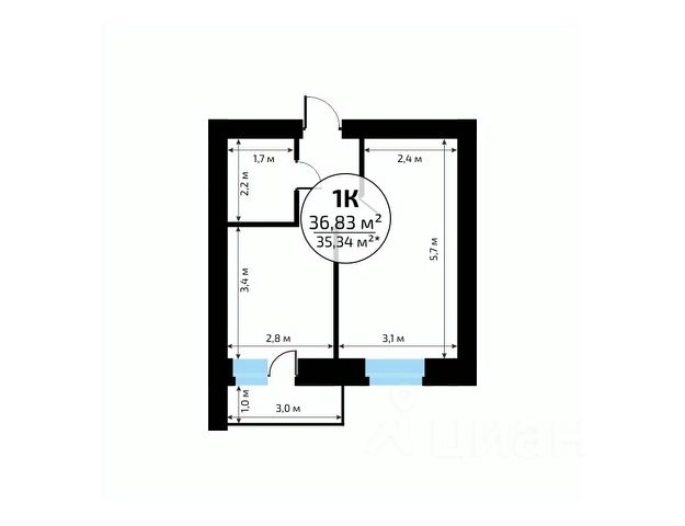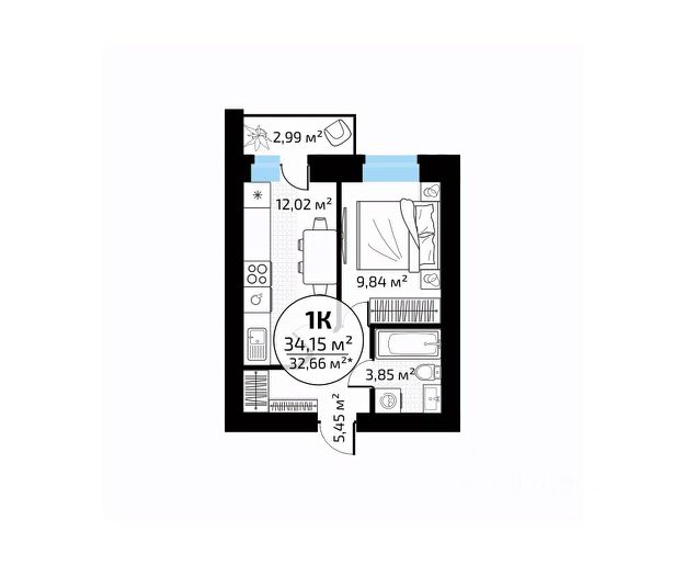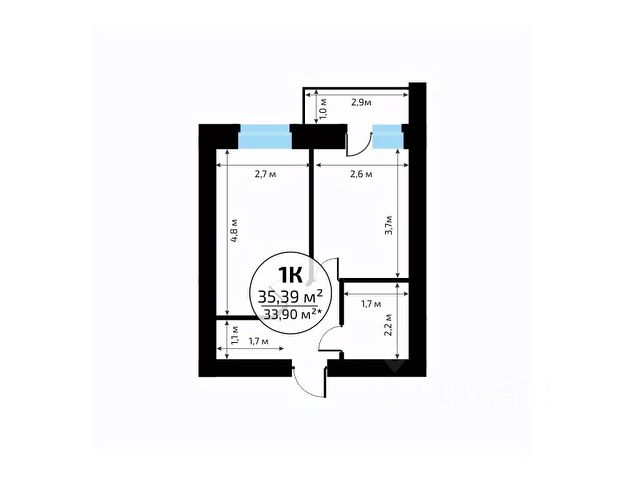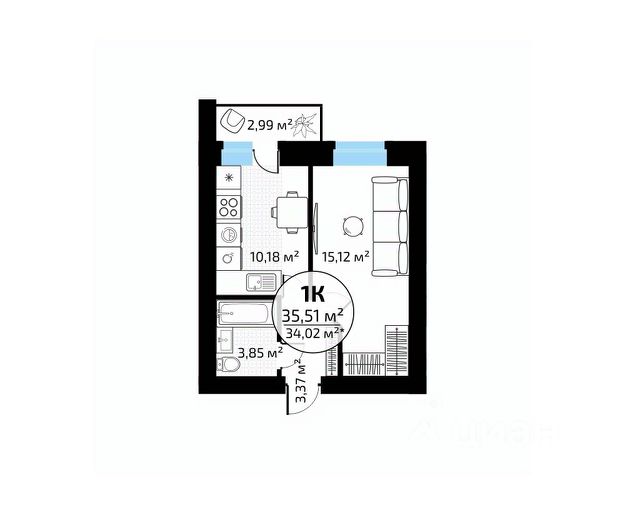 В продаже квартира площадью 32.65 кв. м без отделки. Квартира находится в жилом комплексе "Юность", на 2 этаже 24 этажного дома. Застройщик - ГК "Развитие".