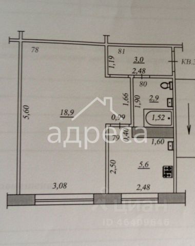 Ковролин в комнате, линолеум ванна, коридор, кухня.