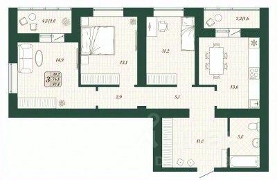 • ✅ Минимальная площадь: 58 м²