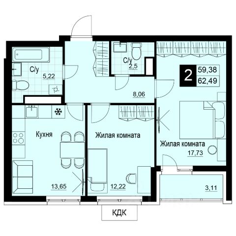 • ✅ Минимальная площадь: 58,4 м²