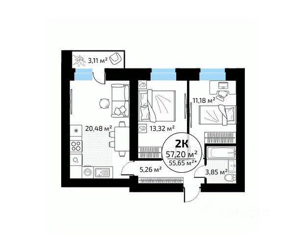 • ✅ Минимальная площадь: 42,2 м²
