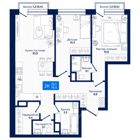 ЖК "Юность" — комфортный ритм города, рядом с природой Жилой комплекс "Юность" создан для тех, кто ценит городскую динамику, продуманное пространство и возможность отдыхать на природе без длительных поездок. Это современное и стильное место для жизни, где каждая деталь работает на комфорт — от архитектуры до расположения. Планировки на любой этап жизни Комплекс предлагает разнообразие решений для разных потребностей: - Удобные студии — для тех, кто ценит компактность и функциональность - Классические однокомнатные квартиры — идеальны для молодых пар - Просторные двух- и трёхкомнатные варианты с раздельными санузлами — для семей с детьми Современная архитектура и качество строительства Здания выполнены по монолитной технологии. Контрастные фасады, панорамные лоджии и качественные отделочные материалы формируют выразительный и уютный облик. Архитектура комплекса гармонирует с городским ландшафтом, создавая ощущение уюта снаружи и внутри. Двор — для детей, спорта и отдыха Закрытая территория комплекса организована как многофункциональное пространство. Здесь есть: - Игровые площадки на безопасном покрытии - Зоны отдыха для взрослых - Пространства для активностей и спорта Локация — всё под рукой, и природа рядом Комплекс расположен вблизи Волги и зелёных городских парков. Всего 15 минут пешком — и вы на берегу реки. В шаговой доступности также: МТЛ Арена — 2 мин Школа 46 — 4 мин Городская больница 5 — 10 мин Пляж и Центральный парк — 1520 мин На автомобиле: До автовокзала — 15 мин До центра — 20 мин До ж/д вокзала — 30 мин Всё для жизни — на первых этажах В собственном ритейл-пространстве комплекса будут располагаться супермаркеты, пекарни, кофейни и пункты выдачи заказов. Повседневные задачи решаются, не выходя за пределы двора. Безопасность и парковка Для вашего удобства предусмотрены: - Подземный паркинг по стилобатной системе - Наземная парковка для гостей - Круглосуточное видеонаблюдение по периметру комплекса ЖК "Юность" — место, где городская жизнь сочетается с тишиной природы, а каждое утро начинается с комфорта. Продается 2-комнатная квартира с отделкой от застройщика в районе Октябрьский в городе Самара.