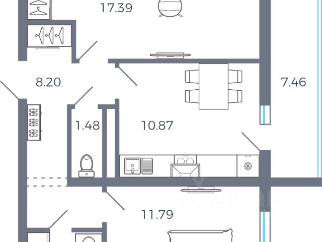 • ✅ Минимальная площадь: 49,6 м²
