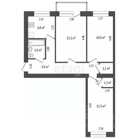 38,7 кв.м. Большая кухня 11,3 кв.м., что является редкостью для такого типа домов, комната квадратной формы 20,6 кв.м с нишей под шкаф, гардеробную или спальное место. Застекленная лоджия из кухни. В коридоре шкаф-купе.