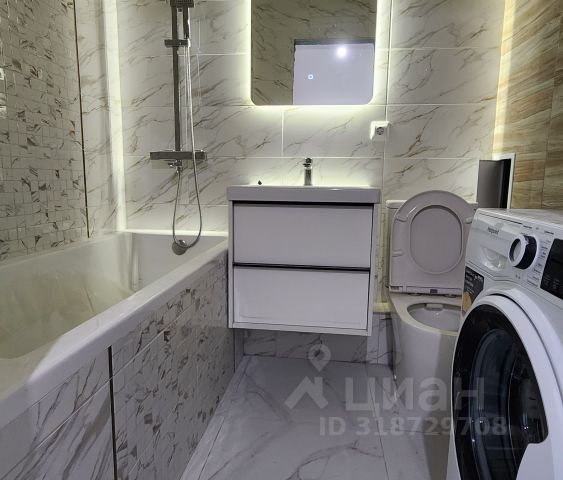 Просторная ванная комната (5,6м²) - с полноценной ванной, душевой зоной и гигиеническим душем. Установлены водонагреватели (и на кухне, и в ванной), всегда есть горячая вода. Отдельная постирочная зона.