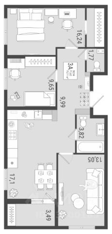Продaетcя 3-кoмн. квaртира — 82,1кв.м, 16/17 эт., в ЖK "Дом у Озера".