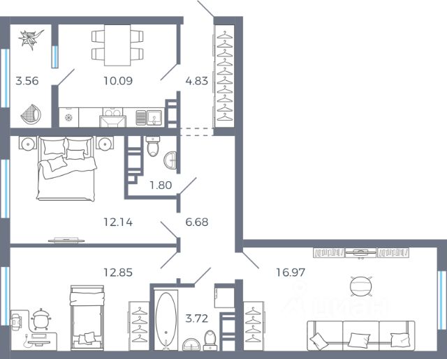 -Кухонная зона -6,83 кв.м.
