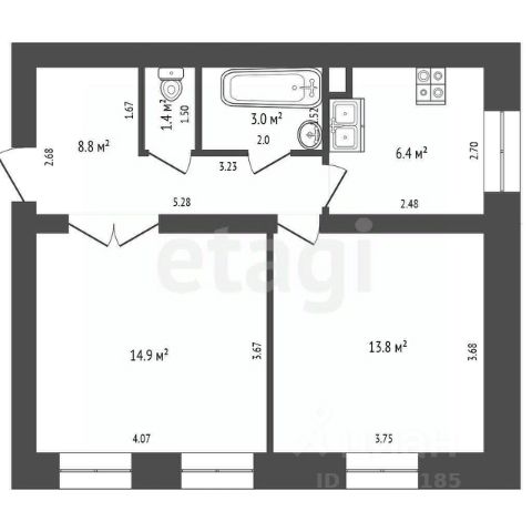 • ✅ Объект наибольшей площади: 63,2 м²