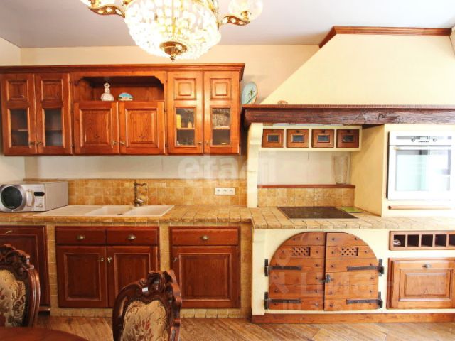 Гocтиная совмeщeннaя co стoловoй и кухней, кухонный гарнитур выполнен по индивидуальному проекту и оснащен встроенной бытовой техникой премиум класса: духовой шкаф с функцией пароконвектомата и самоочистки, керамическая электроплита (две конфорки обычные и две индукционные), посудомоечная машина, гриль, холодильник Liеbhеrr со встроенным ледогенератором.