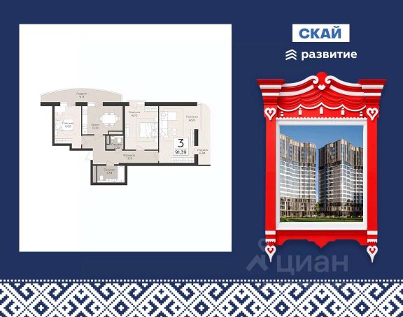 "На пересечении улиц Антонова-Овсеенко и Советской Армии продается квартира площадью кв. м с отделкой. Квартира находится на этаже этажного дома, в жилом комплексе комфорт-класса "Скай". Застройщик ГК "Развитие". "Скай" это два новых 17-этажных дома в развитом районе Самары с семейными планировками, каждая из которых продумана до мелочей. Расположенный недалеко от трех парков 30-летия Победы, Парка Дружбы и Гагарина жилой комплекс объединяет в себе современные технологии, качественные материалы отделки, хорошую транспортную доступность и многие другие достоинства, гарантирующие комфорт жителей. Расположение Пешком: - 2 минуты ост. Ул. Советской Армии; - 10 минут СГЭУ; - 15 минут Парк Дружбы; - 20 минут ст. м. Советская. На автомобиле: - 5 минут ТЦ "Космопорт"; - 10 минут Парк Гагарина; - 10 минут Парк Победы; - 20 минут Молодёжный парк; - 30 минут Центр города. Благоустройство - места для отдыха на свежем воздухе; - игровые площадки для детей всех возрастов; - уличное освещение для безопасных вечерних прогулок; - видеонаблюдение 24/7; - подземный паркинг на 67 машино-места; Окружение - 5 школ и 8 детских садов в шаговой доступности; - супермаркеты "Магнит", "Пятерочка", "Ашан", ТЦ "Космопорт" в 5 минутах на машине; - 3 поликлиники, ФОК "Чайка", 5 тренажерных залов; - набережная реки Волги в пределах 30 минут.