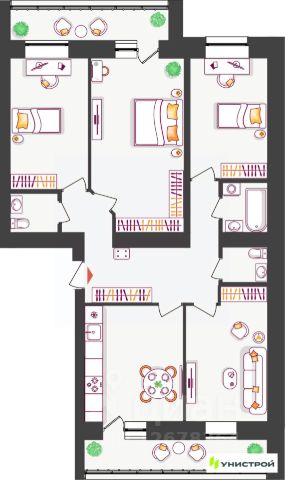 Окна на три стороны, квартира очень светлая, батареи греют отлично, летом нежарко.