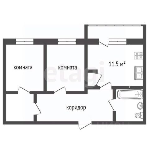 В квартире остается кухонная мебель, газовая плита и мойка.