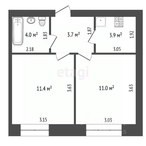 Площадь: общая 45.3 м², жилая 27.5 м², кухня 7.6 м², застеклённая лоджия 4.0 м². Комнаты изолированные, санузел раздельный.