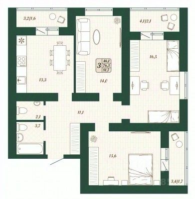 Продаётся 3-комнатная квартира в строящемся доме (Дом 11 ), срок сдачи: IV-кв. 2026, общей площадью 76.3 кв.м., на 7 этаже. Жилой комплекс "Уют-Парк" ЖК "Уют-Парк" -современный жилой комплекс комфорт-класса состоит из семи 9-этажных и двенадцати 16-этажных домов. Преимущества: - Высокое качество строительства домов - Экологически чистый район, близость лесной зоны для прогулок - Благоустроенная территория: прогулочный бульвар, детские и спортивные площадки - Инфраструктура рядом: две школы, детский сад, магазины, физкультурно-спортивный комплекс, арт-объект "Колоннада" и светомузыкальный фонтан - Выделенные места для парковки автомобилей - В ближайшее время запланировано открытие поликлиники, торгового центра, центральной площади района - масштабного объекта благоустройства с водопадом, кафе и прогулочными бульварами. Уютные холлы - Современный дизайн подъездов выполнен в экостиле, поддерживая идею всего жилого комплекса, перекликаясь с фасадами и оформлением двора - Пол и часть стен в холле выполнены с использованием долговечного керамогранита - Светопрозрачные входные группы обеспечивают наполнение холла естественным светом - Лифт с нулевого этажа создает дополнительное удобство для жильцов - В каждом подъезде на первом этаже расположены колясочные. Квартиры - Проектом предусмотрены варианты разной комнатности: от студий до 1, 2 и 3х-комнатных квартир на выбор - Функциональные планировки позволяют максимально эффективно использовать пространство и рассчитаны на разные потребности будущих жильцов - Два вида отделки: Предчистовая "White box": выполнены все капитальные и технические работы, квартира готова для проведения работ по финишной отделке. Чистовая "Премиум": выполнен ремонт с использованием качественных материалов в нейтральной цветовой гамме: ламинат, сантехника, межкомнатные двери, керамическая плитка. Данный вариант позволяет сэкономить ваше время и силы, ускорит заселение в квартиру после получения ключей.