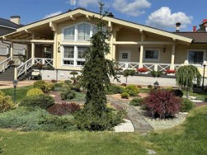 На участке: костровая зона с чашей и качелями, декоративный пруд с альпийской горкой и водопадом, спортивная площадка, ухоженный газон, многочисленные рокарии и декоративные насаждения. Ландшафтный дизайн и посадки растений выполнены профессионально по отдельному проекту. Имеется профессиональный автополив (две зоны), включая капельный, блок управления и регулировки, дополнительная компрессорная установка, наземные и прифасадные краны разбора воды. Дизайнерские фонари наружного освещения различной высоты по всему периметру участка и на фасадах зданий; подсветка растений. Забор выполнен по всему периметру участка на монолитной бетонной ленте.