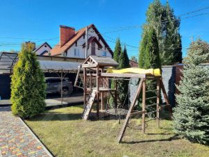 За воротами дополнительная парковка. По границам ландшафтный дизайн (различные насаждения, дубы, ели). Земельный участок ровный. ИЖС. Удобные подъездные пути.