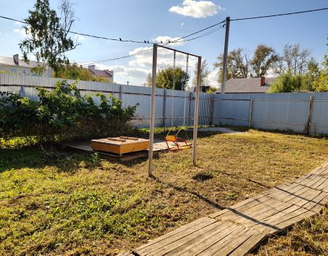 Продаётся тёплая и уютная часть жилого дома с земельным участком 9,56 соток. Дом расположен в спокойном, обжитом районе с удобным асфальтированным подъездом. Соседи только с одной стороны — по трём сторонам участок свободен, что обеспечивает тишину и уединение. Дом и планировка В доме: две спальни, просторная гостиная-столовая, кухня, кладовая с металлическими стеллажами и небольшой гардеробной, санузел, тёплая и холодная прихожие; остаётся вся мебель и техника — можно заехать и жить без вложений; установлены два котла отопления — газовый и электрический. Подключено электричество, газ, водоснабжение, на все коммуникации установлены счётчики. Мебель и техника мебель: деревянная двуспальная кровать с матрасом, детские кровати (в том числе растущая), шкафы, компьютерный стол, комплект мебели для столовой, ТВ-тумба, кухонный гарнитур, шкаф, комод и обувницы; техника: два современных телевизора с приёмниками Триколор ТВ, холодильник, стиральная и посудомоечная машины, микроволновая печь, электрический водонагреватель на 100 л. Двор и участок новая деревянная беседка с мебелью, мангал, качели, песочница; парковка на несколько автомобилей (отсыпана щебнем), проведены коммуникации для подключения мойки; за домом — зона отдыха: каркасный бассейн 366х122 см, свободная территория для отдыха; металлические грядки, теплица, хозпостройки для хранения инвентаря и оборудования, молодые яблони, кусты малины, клубника, участок под посадки или зону отдыха; по всему участку проведено водоснабжение для полива и электричество, установлен забор. Инфраструктура Рядом — продуктовый магазин,пункты выдачи Wildberries и Ozon, остановка общественного транспорта. Документы Один взрослый собственник, все документы готовы к сделке. Торг уместен. Возможна покупка с использованием ипотеки.
