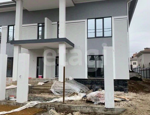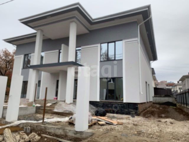 Материал стен — клеёный брус из высококачественной древесины ангарской сосны. Фундамент ленточный, цокольной формы, блочный, на армированной бетонной подушке, скреплён монолитным бетонным поясом.