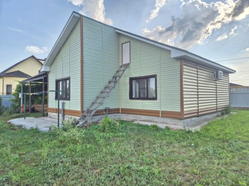 В доме 2 этажа. Первый этаж предназначался под мастерскую, баню, кладовую и котельную. Второй- свободной планировки. Есть не связанный с фундаментом дома фундамент под русскую печь. В чердачном пространстве предусмотрена возможность обустройства двух мансардных полноразмерных комнат площадью 14 и 17 м.кв. Установлены деревянные рамы, крыша из профнастила, дом обшит металлическим сайдингом. По задумке - дом каркасный (каркас двойной, брусовой).