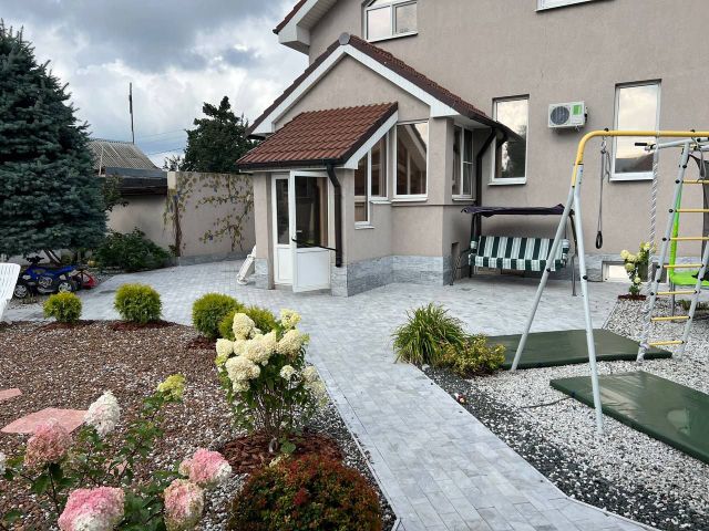 Гараж на два автомобиля, два заезда, каждый оборудован рол-ставнями на пульте. Из гаража вход в дом первый этаж.
