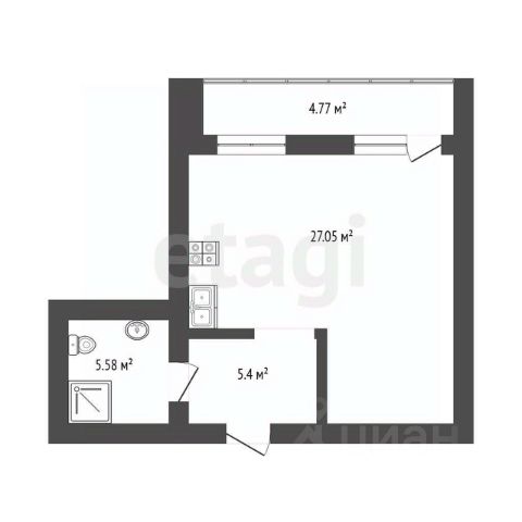 Площадь общая 29,7кв.м. жилая- 16,5кв.м., кухня- 6,1кв.м., с/у совмещен.