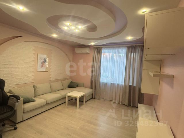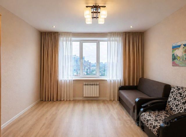 В квартире сделан качественный ремонт, на полу в комнате ламинат, в прихожей и на кухне линолеум, натяжные потолки. Сан.узел выложен кафелем, сан.техника заменена. Лоджия застеклена и отделана под ключ.