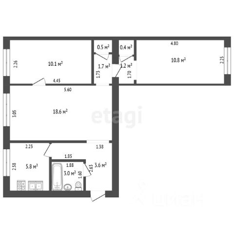 • ✅ Объект наибольшей площади: 80,1 м²