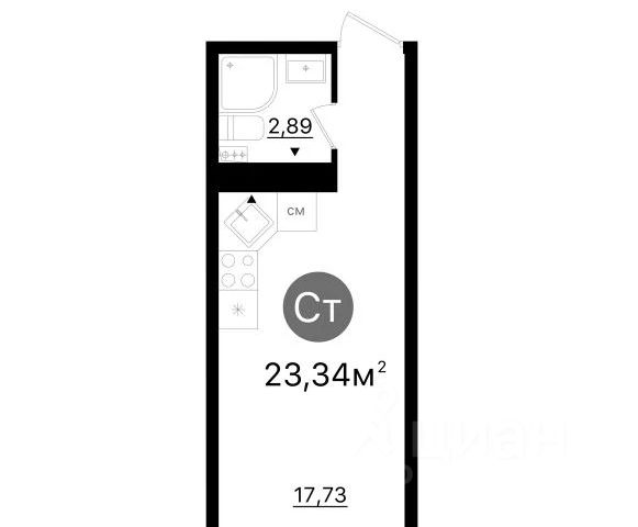 • ✓ В базе Циан 1 квартир-студий на 6 этаже в микрорайоне Юнгородок в городе Самара