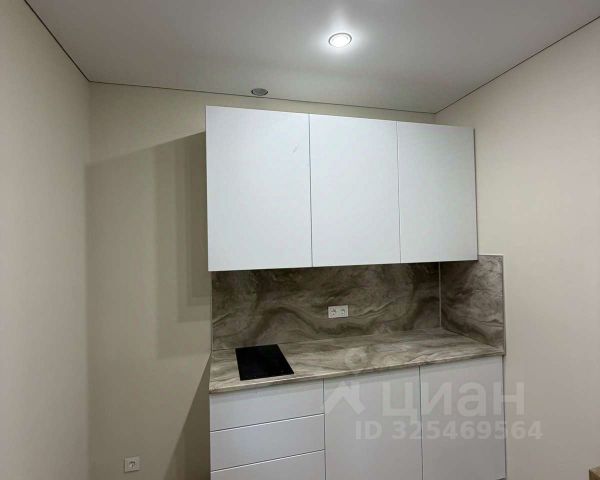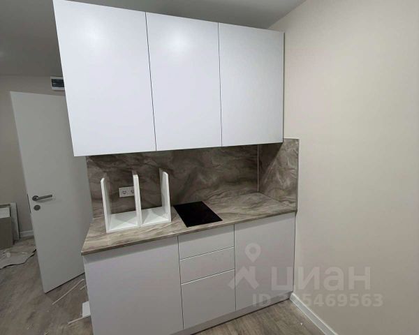Студия будет передаваться покупателю укомплектованная кухонным гарнитуром со встроенной техникой.