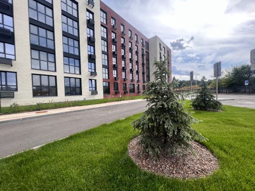 Многоуровневое ландшафтное озеленение разрабатывался с ведущими дизайнерами ландшафтных бюро. На территории двора будут высажены многолетние деревья, цветущие многолетние растения, которое создадут уютное дворовое пространство для отдыха и прогулок. В вечернее время позволит наслаждаться прогулками Торшерное освещение.