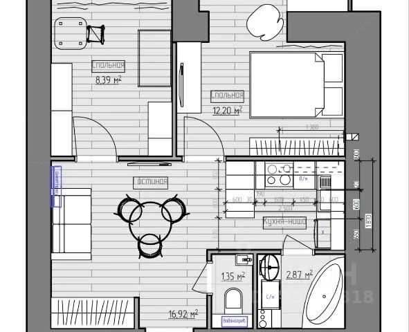 Продуманная планировка: Квартира имеет удобное разделение на зоны.