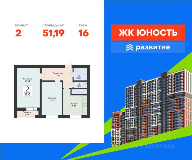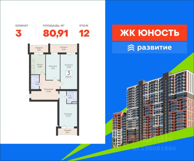 В продаже квартира площадью 56.01 кв. м с черновой отделкой. Квартира находится в жилом комплексе "Юность", на 4 этаже 24 этажного дома. Застройщик - ГК "Развитие". ЖК "Юность" - это концепция дома для жизни и отдыха. Яркий и динамичный, смелый и прекрасный как сама юность. "Юность" - жилой комплекс комфорт-класса для тех, кто выбирает жизнь в идеальном балансе между природным окружением и преимуществами современного города. Инфраструктура • Окружение: ЖК в Октябрьском районе Самары, одном из самых комфортных в городе: в шаговой доступности Пляж на спуске Советской Армии и лодочная станция, Дача Головкина - более известная как "Дом со слонами", Загородный парк площадью более 42 га, парк Гагарина и сквер Леснуха; • Транспорт: Рядом остановки общественного транспорта, выезд на Ново-Садовую улицу; • Школы и детсады: В шаговой доступности - школа, детский сад; • Магазины и услуги: В округе находятся крупные супермаркеты, торговые центры, аптеки, фитнес клубы, спортивный комплекс "МТЛ-Арена" и Академия гимнастики, прочие бытовые объекты; • Парковки и дворы: Запланированы гостевые стоянки и единое благоустроенное пространство двора - зоны отдыха, детские и спортивные площадки. Преимущества • Прочность и долговечность: Кирпичная кладка способна служить 100-150 лет, устойчива к климатическим нагрузкам; • Комфортное проживание: Толстые стены и продуманные перегородки обеспечивают тишину и тепло, без студий - продуманные планировки с оптимальным соотношением жилой и общей зон; • Безбарьерный доступ: Лифты с нулевой отметкой у входа - удобно для колясок и людей с ограниченными возможностями; • Автономное обеспечение: Своя котельная гарантирует стабильное отопление и горячую воду; • Финансовая надёжность: Объект аккредитован крупнейшими банками, возможны ипотека, маткапитал, рассрочка, трейдин; • Экологичность и комфорт: Район удалён от шумных магистралей, рядом лес и зелёные зоны - удобные для прогулок и отдыха.