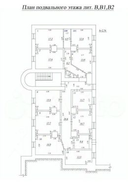 Помещение разделено на 6 комнат. На плане комнаты 37-41, 43. Два входа на этаже (в комнату 37 и 41)