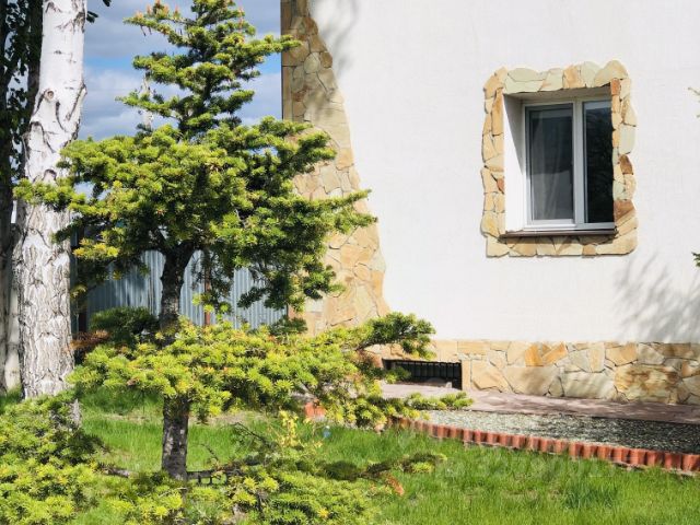 Трехэтажный кирпичный дом. В доме 2 санузла, сауна, камин, 4 балкона. 1 этаж: гостиная, кухня, сауна, 2-ой этаж: 3 спальные комнаты, ванная комната. Состояние отделки - среднее. На цокольном этаже просторный гараж, овощехранилище, погреб. Участок 15 соток, многочисленные плодовые насаждения, теплица, хозблок, туалет. Улица просторная, большой участок перед домом.