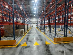 - установлены фронтальные стеллажи с макс нагрузкой 11.500 кг на балку.
