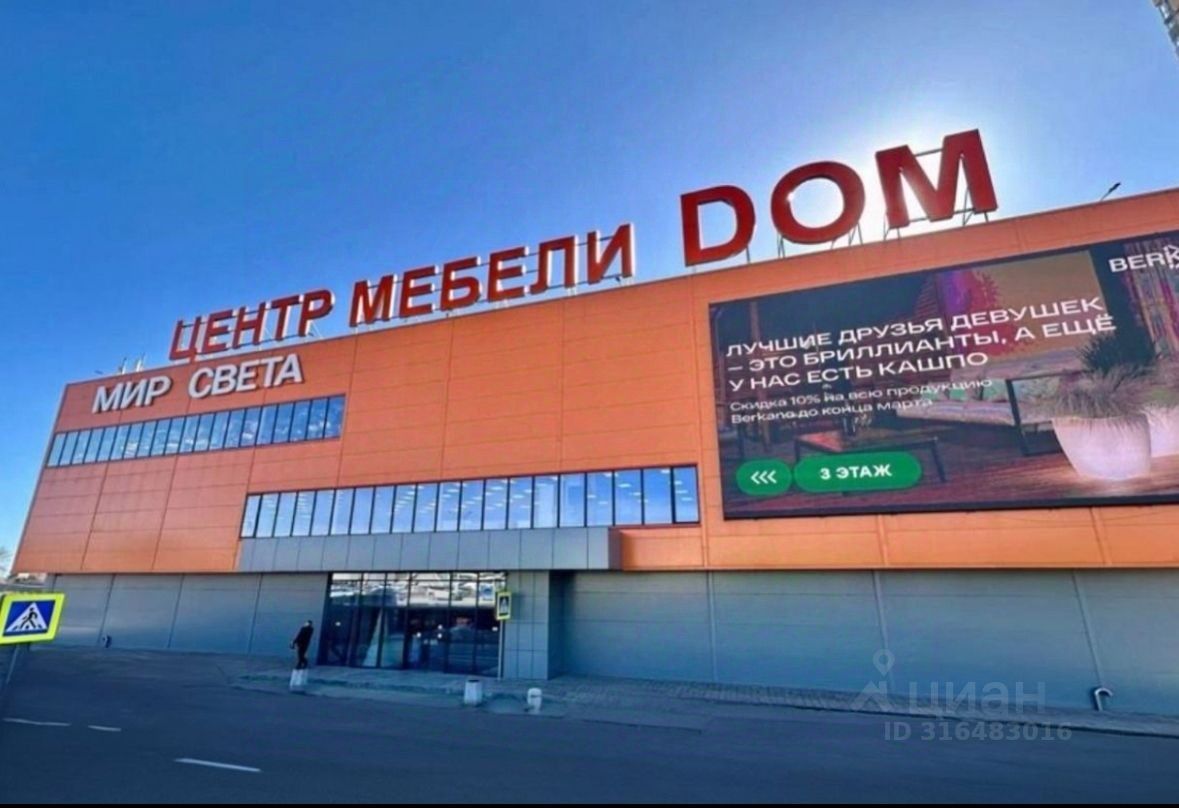Аренда открытого торгового пространства, общей площадью 1110 м2 на 3 эт в центре мебели DOM. Напротив ТРЦ Космопорт. Парковка на 55 машиномест. Два лифта, эскалатор. Соседний отдел арендует Мир Света. Потолки 4 м. Пол - керамогранит. Светодиодное освещение. Приточно-вытяжная вентиляция, охранно-пожарная сигнализация, видеонаблюдение, система оповещения и управления эвакуацией людей, система пожаротушения и дымоудаления. Наличие запасного выхода. В ближайшем окружении: ТРЦ Космопорт, офисный центр, медицинский центр, ярмарка, кафе, ПВЗ. Остановка общественного транспорта в 50 м. Большой автомобильный и пешеходный трафик. Удобная транспортная развязка. Развитая инфраструктура.