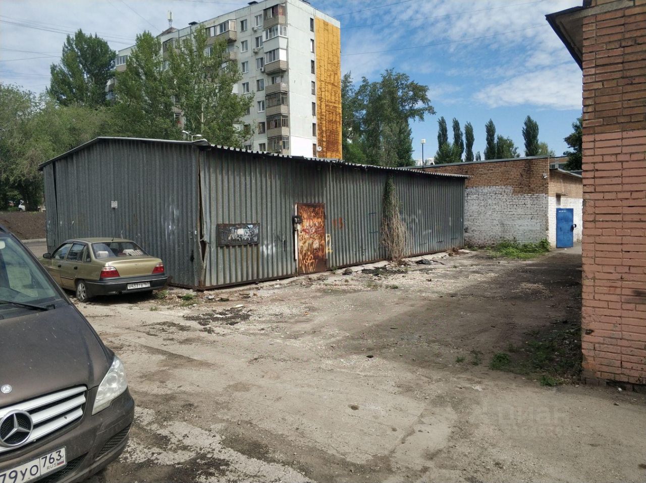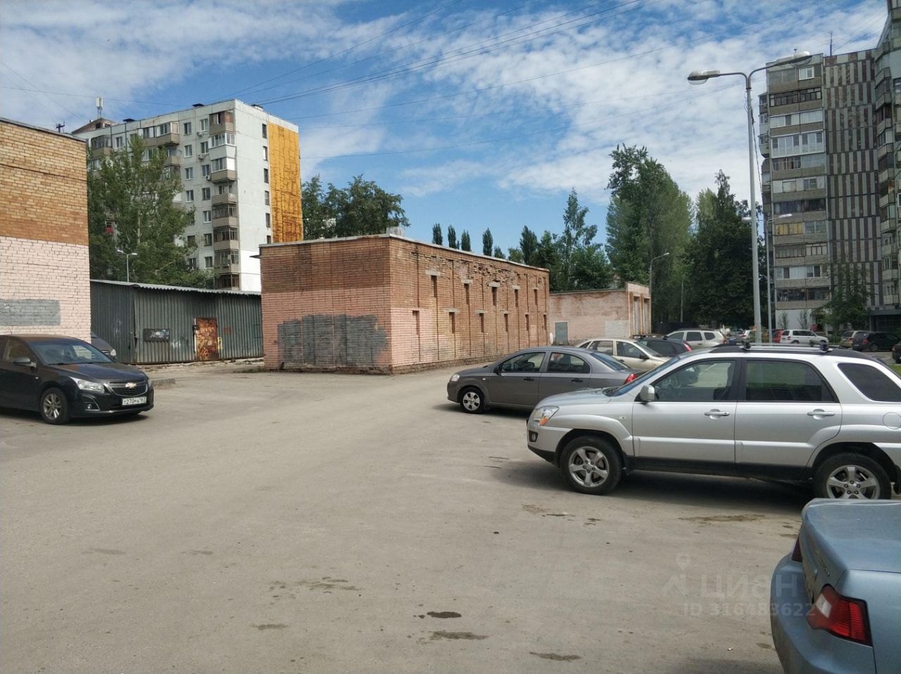 Заасфальтированная площадка вокруг помещения, есть места для парковки автомобиля.