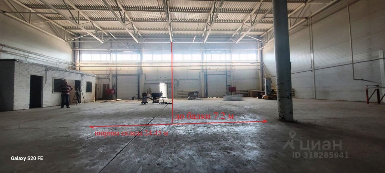 Ленточное остекление по верху на фасаде . Люминисцентные светильники. H потолка - 8.1 метра, рабочая (до балки перекрытия) 7. 8 метров.* проходит труба приточной вентиляции (Н - 5.44 м.) Пол полимерный/антипыль. Шаг колонн 8*16м