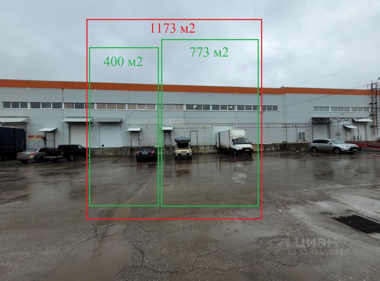 1,2/ 1173 кв.м. (404 + 773 кв.м. вместе или по отдельности) - 2 роллетных ворот докового типа на h- 1.2 метра. 2 отд/ входа для персонала