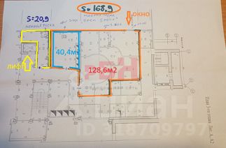 Увеличение площади до 168,9м2 за счет соседнего помещения