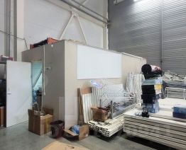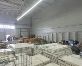 Правильной формы прямоугольное помещение (25* 12 м) с высотой потолка 8.6 метров до перекрытия крыши , 6.6 м до ферм. Пол топпинг/ антипыль с противопожарной обработкой. Ленточное остекление по периметру (естественный свет). Диодное освещение, а значит экономия электричества.