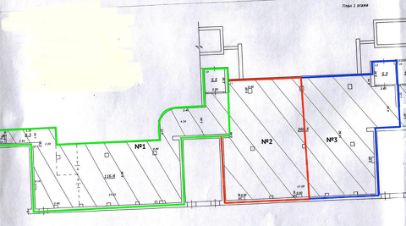 Входная группа поделена между двумя арендаторами. На плане помещение выделено зеленым цветом, с четырьмя большими окнами выходящими на задний двор дома.