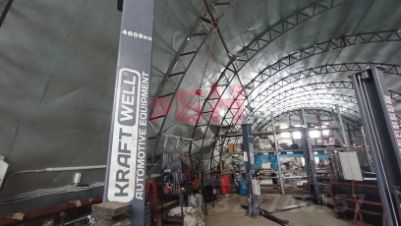 Аренда ангара арочного типа с внутренними офисными подсобными и бытовыми помещениями, отапливаемый, большие ворота, возможность аренды с подъемниками (KRAFT WELL 4000 кг) 2 шт и оборудованием для автосервиса или ангар очистят от всего лишнего, на базе открытые площадки.