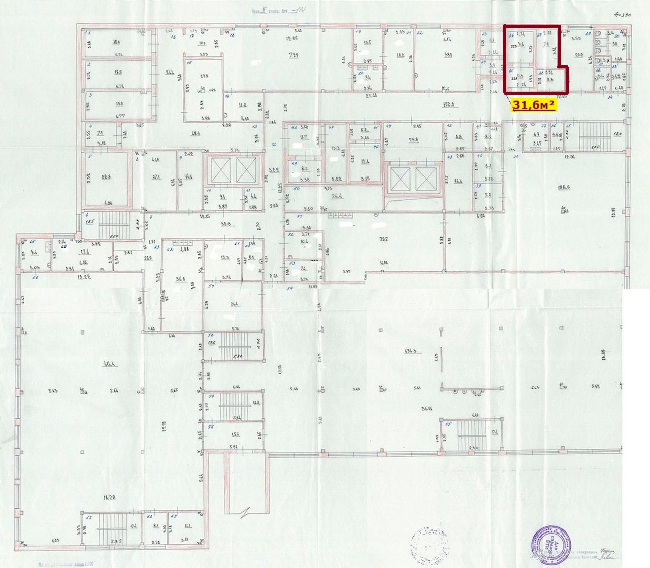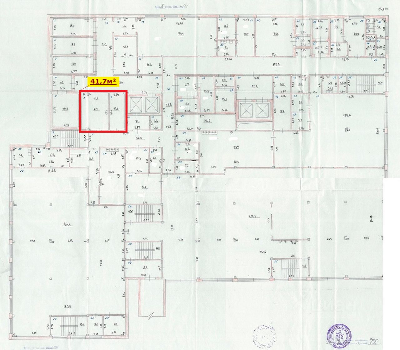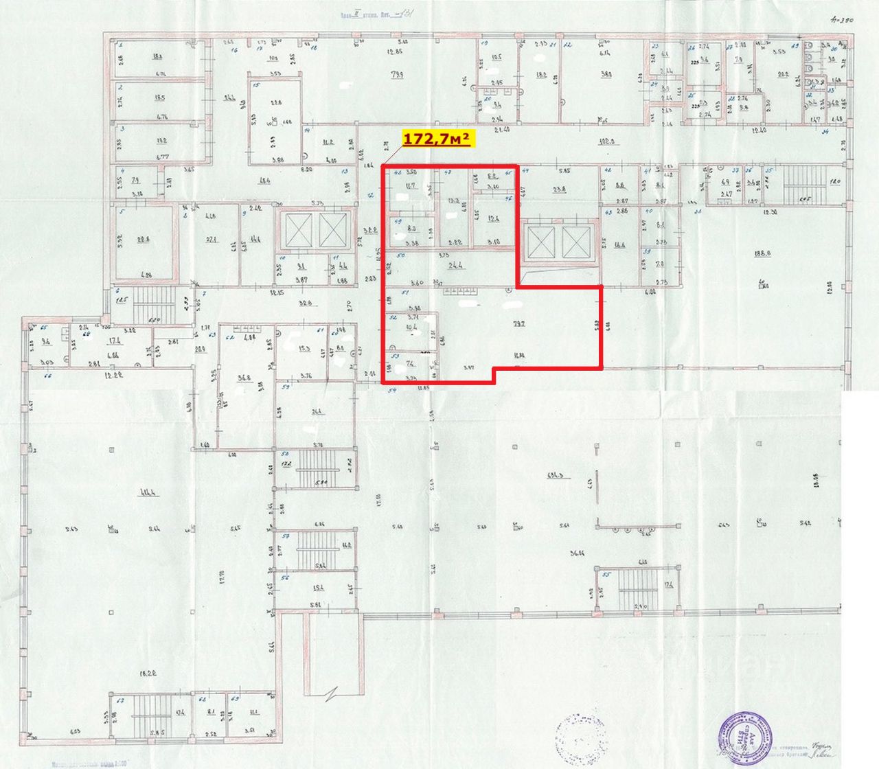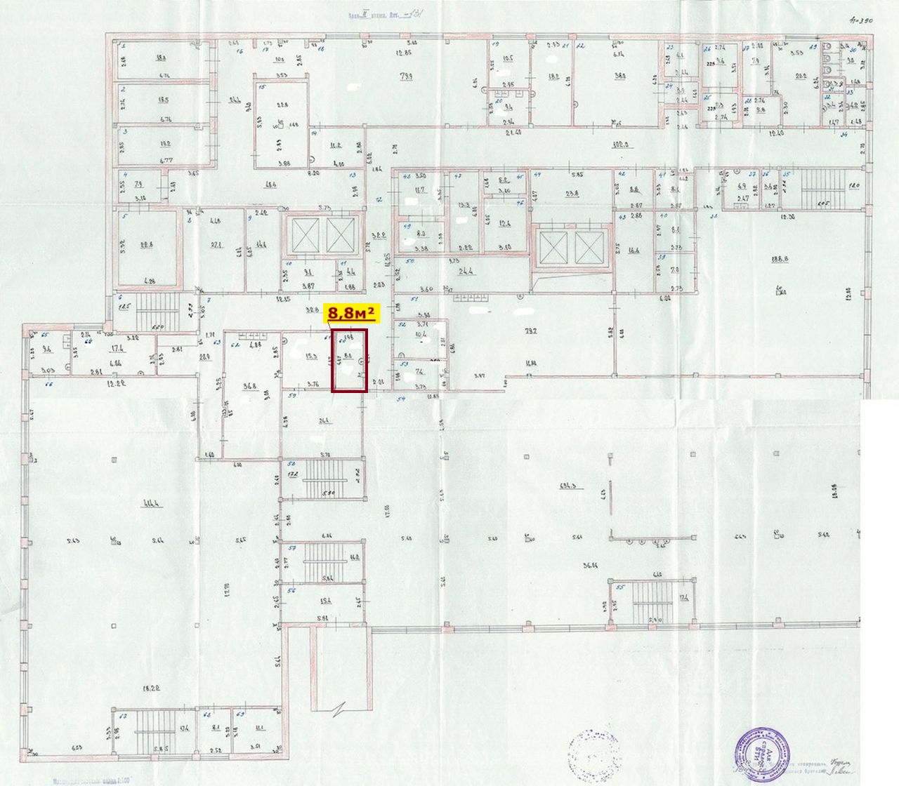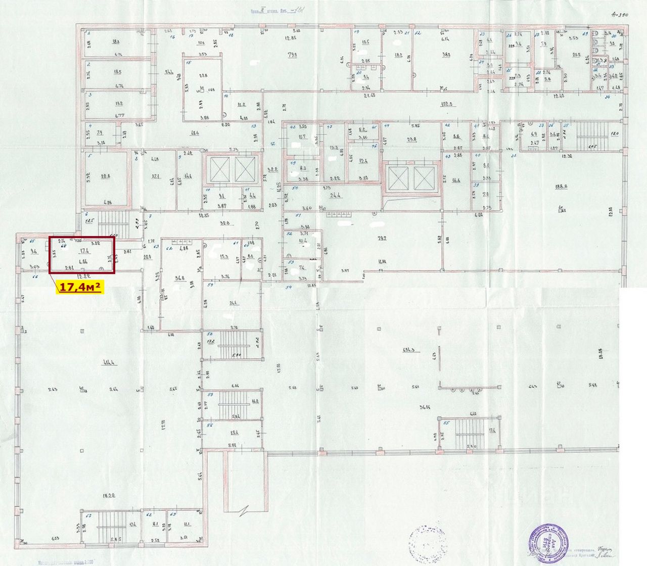 Несколько санузлов, подсобные и офисные помещения.