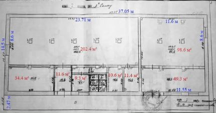 - Несколько отдельных помещений: 4 помещения по ~10-11 кв.м, одно помещение ~34 кв.м (офис, кладовая, бытовка)
