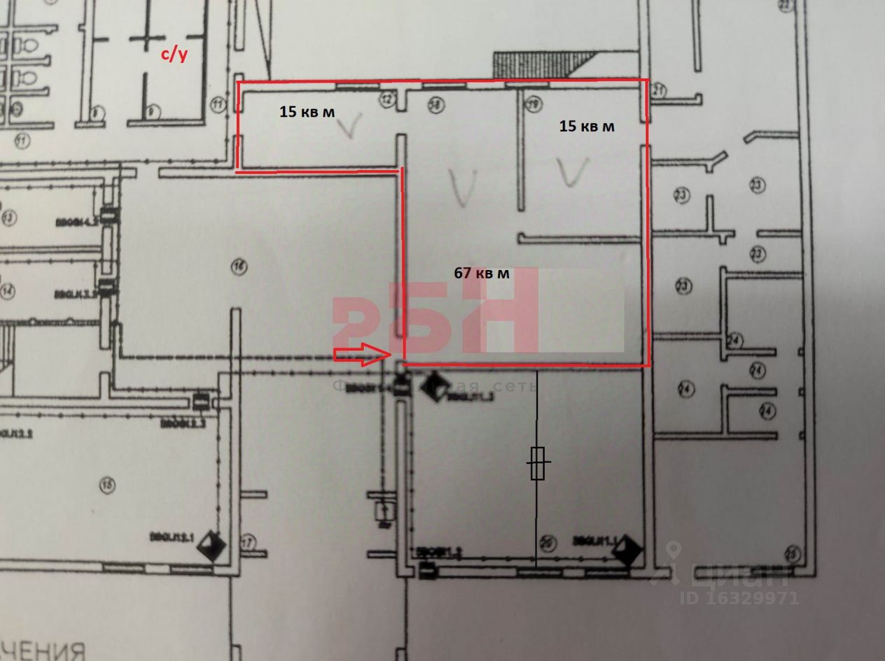 - большой зал 67 кв м, кабинет 15 кв м и зона кухни 15 кв м с оборудованием и мокрой точкой;